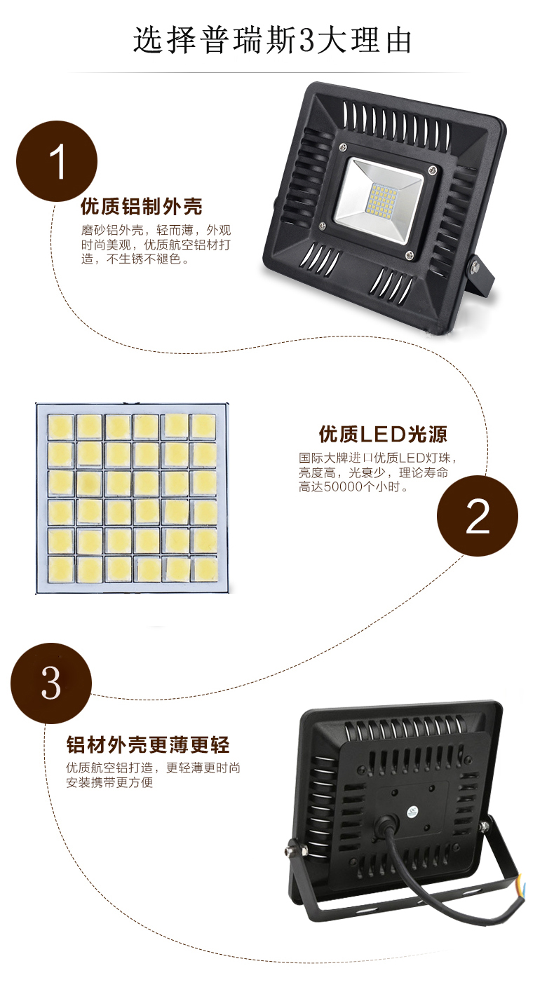 薄led泛光燈30W 50W 100W技術(shù)參數(shù):