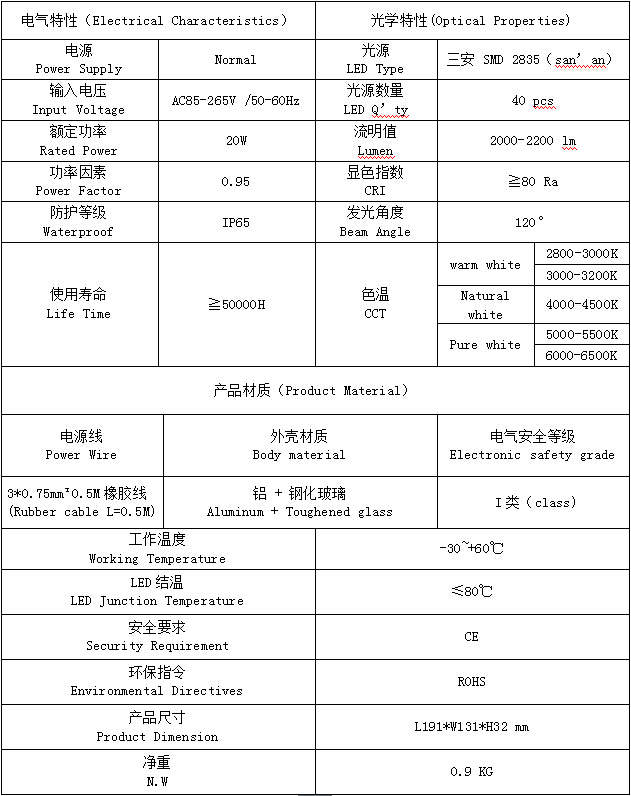 PF73L-20W產品特點(Product features): 1.配合恒流率電源,顯色效果和亮度更出色; 2.了鋁基板面積,可以快速將熱量傳給殼體,增加了燈具的導熱效果 3.蓋咬合設計有效防止側邊漏光; 4.等級IP65 PF73L-20W產品規(guī)格(Product Spec):