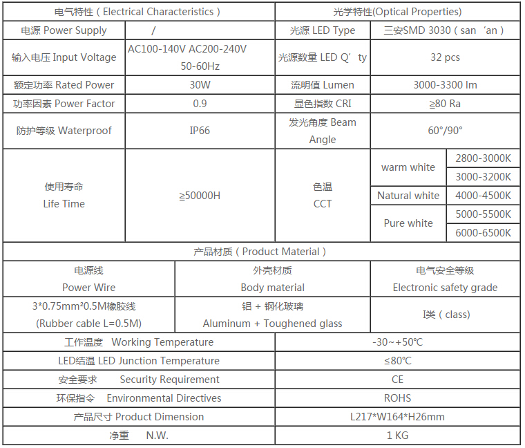 2、以LED光源,使用壽命長50000小時以上,特別適合戶外大面積無人看守照明。